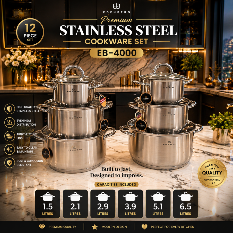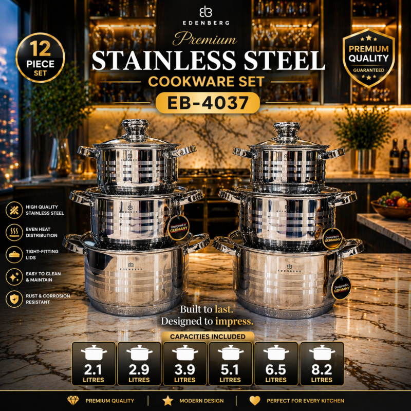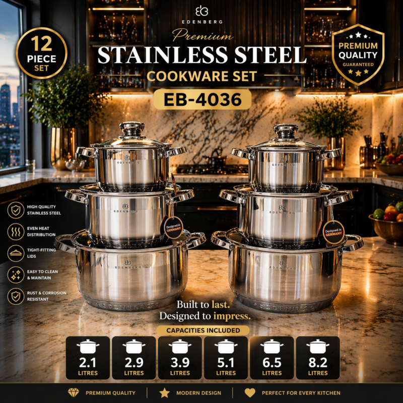 Edenberg 12pc Stainless steel Cookware Set EB-4037