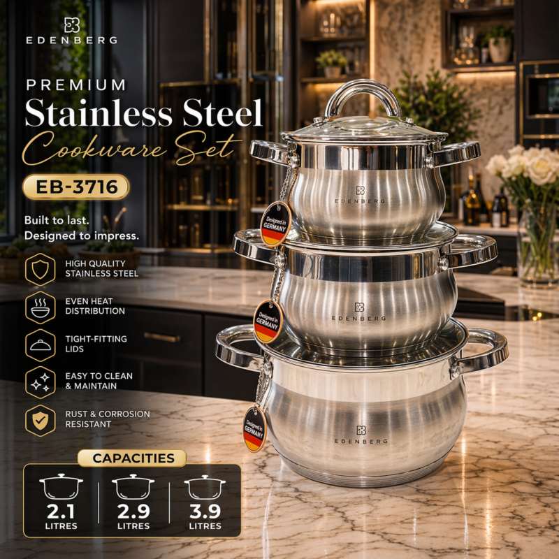 Edenberg Stainless Steel Cookware set 6pcs EB-3716.