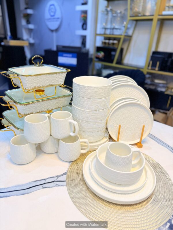 24pcs white Vintage Dinner Set with 3pcs chaffing dishes combo