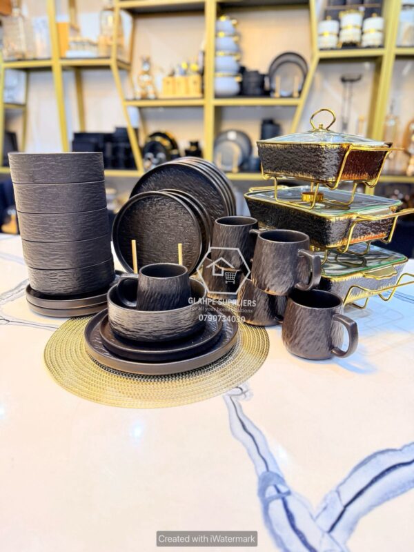 24pcs black vintage dinner set with 3pcs chaffing dishes