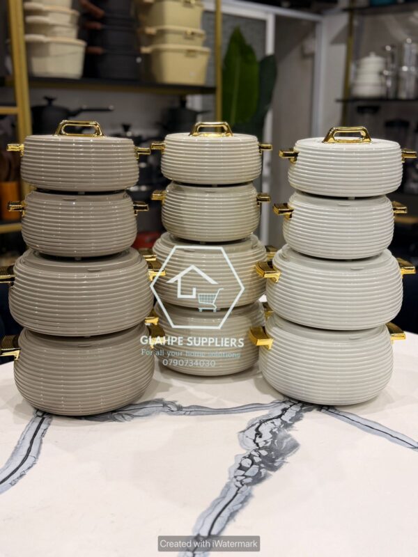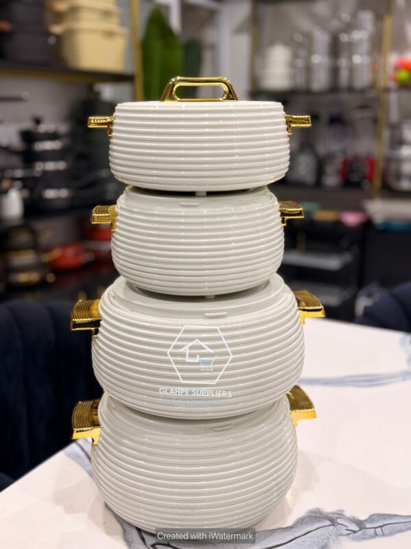 - Gold-Finished Handles: Strong, comfortable handles for easy carrying and serving.