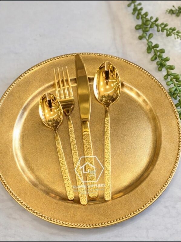 Embossed gold cutlery set