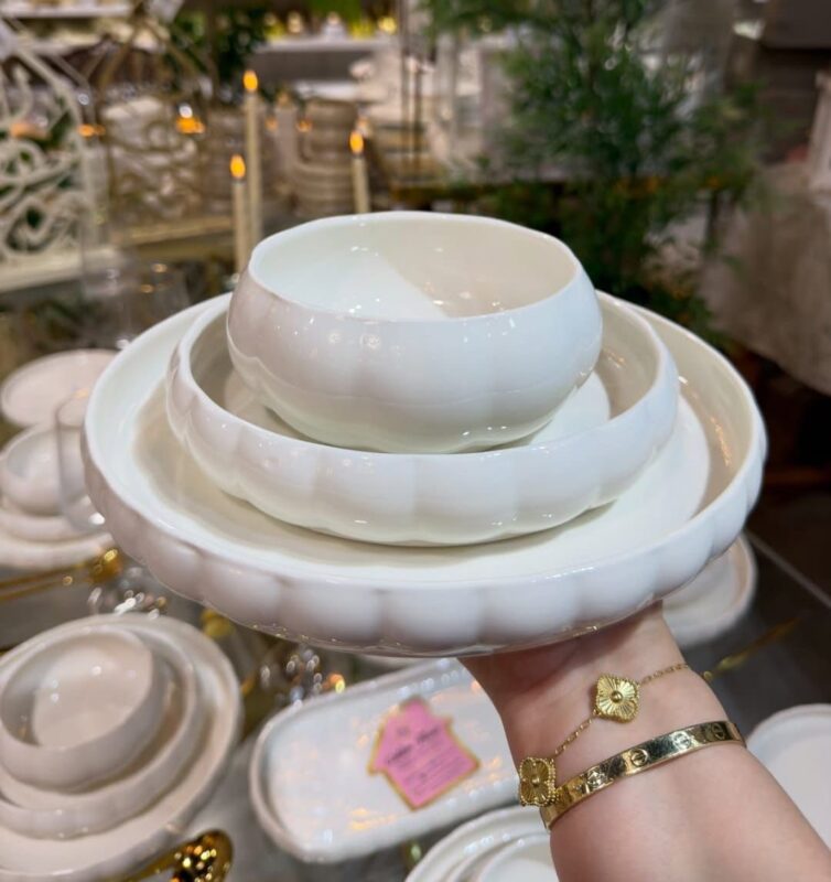 - Luxurious Gold Accents: Serving dishes feature stylish gold-colored stands for an elevated presentation.