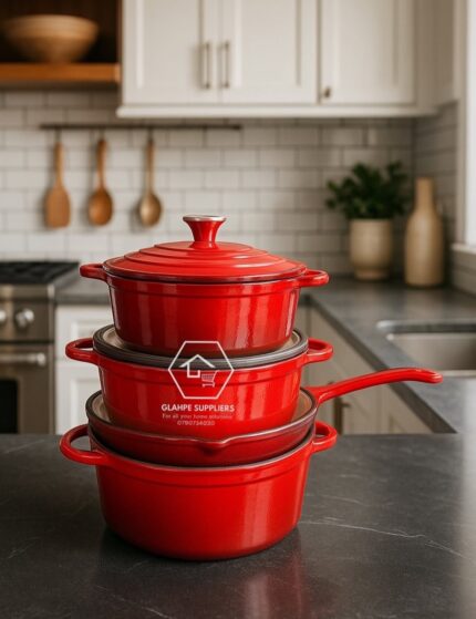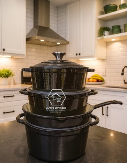 • Cast iron material.CAPACITY; *Casserole-24cm,28cm and 30cm. *Frying pan -25cm. *Sauce pan – 19cm.