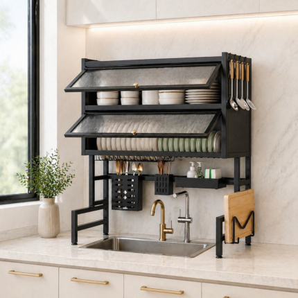 • Space-saving over-the-sink design for a clutter-free kitchen