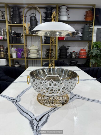 Luxurious Gold and White Round Chaffing Dish