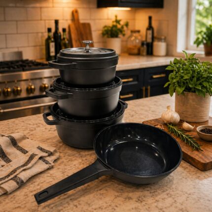 - Ergonomic, heat-resistant handles for a comfortable grip