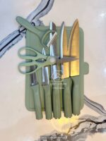 Includes:Chef knife, slicing knife, bread knife, utility knife, paring knife, peeler, cutting board , scissors.