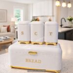 Bring elegance and organization to your kitchen with the bread bin Set, featuring a glamorous diamond-accented design. Crafted with sophistication and practicality in mind, this 4-piece set includes a spacious bread bin and matching tea, coffee, and sugar canisters.