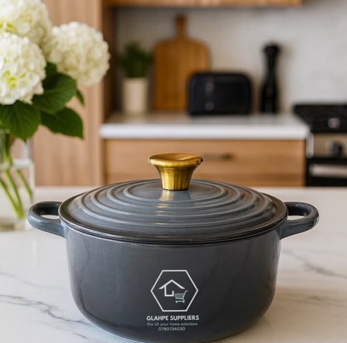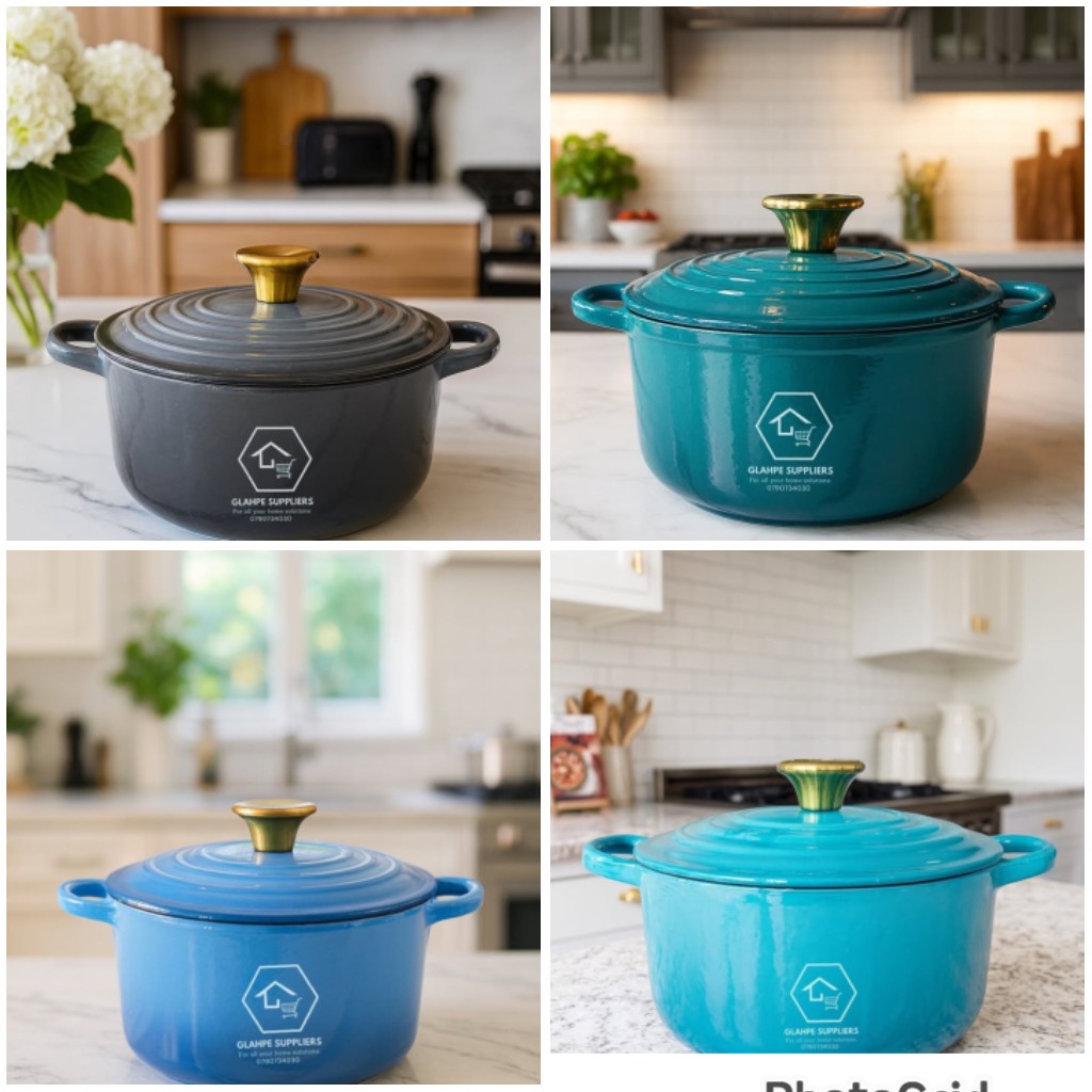 Upgrade your kitchen with this beautifully crafted enameled cast iron casserole pot, designed for exceptional performance, durability, and style. Available in elegant modern colors, each piece features a striking gold-tone knob and a smooth enamel finish that enhances both function and aesthetics.