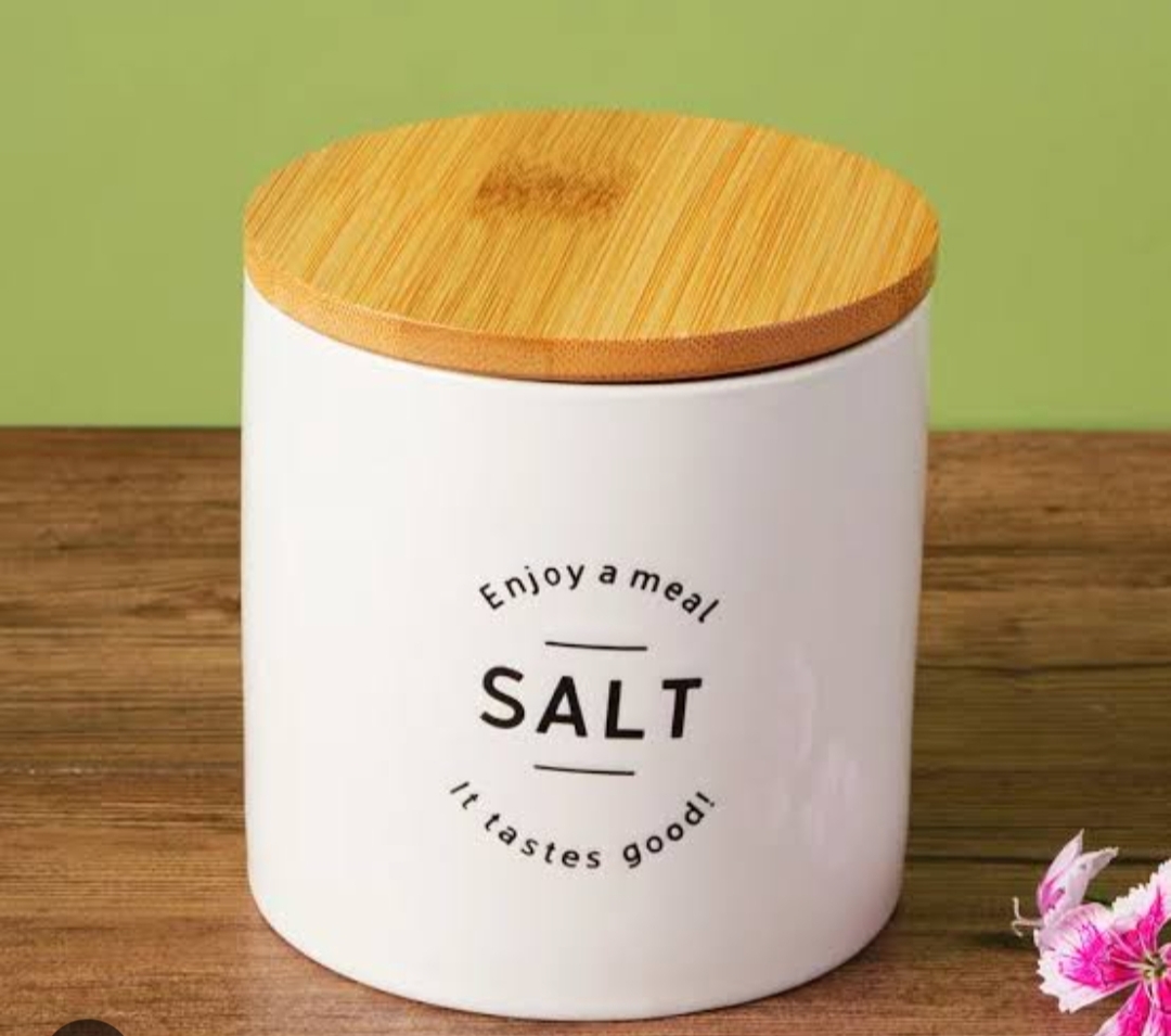 Elegant ceramic salt and pepper shaker set with wooden handles and tray – perfect for adding style to your dining table. Ideal for home, restaurant, or as a gift.