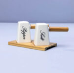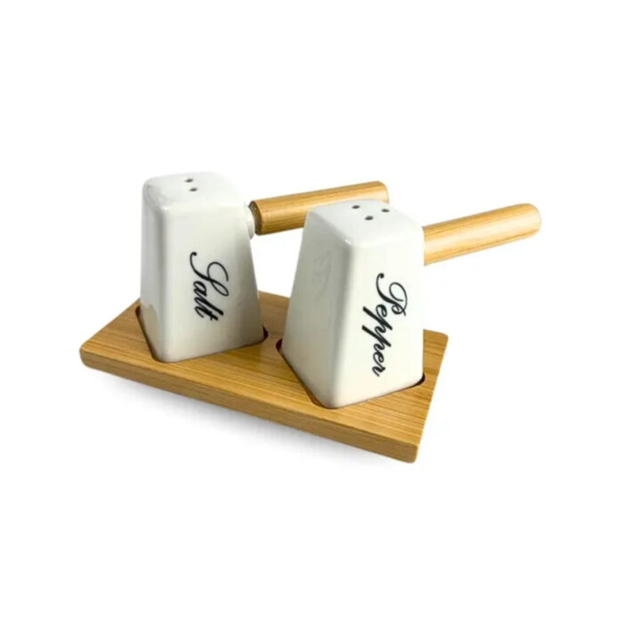 Ceramic Salt and Pepper Shaker With Bamboo Base