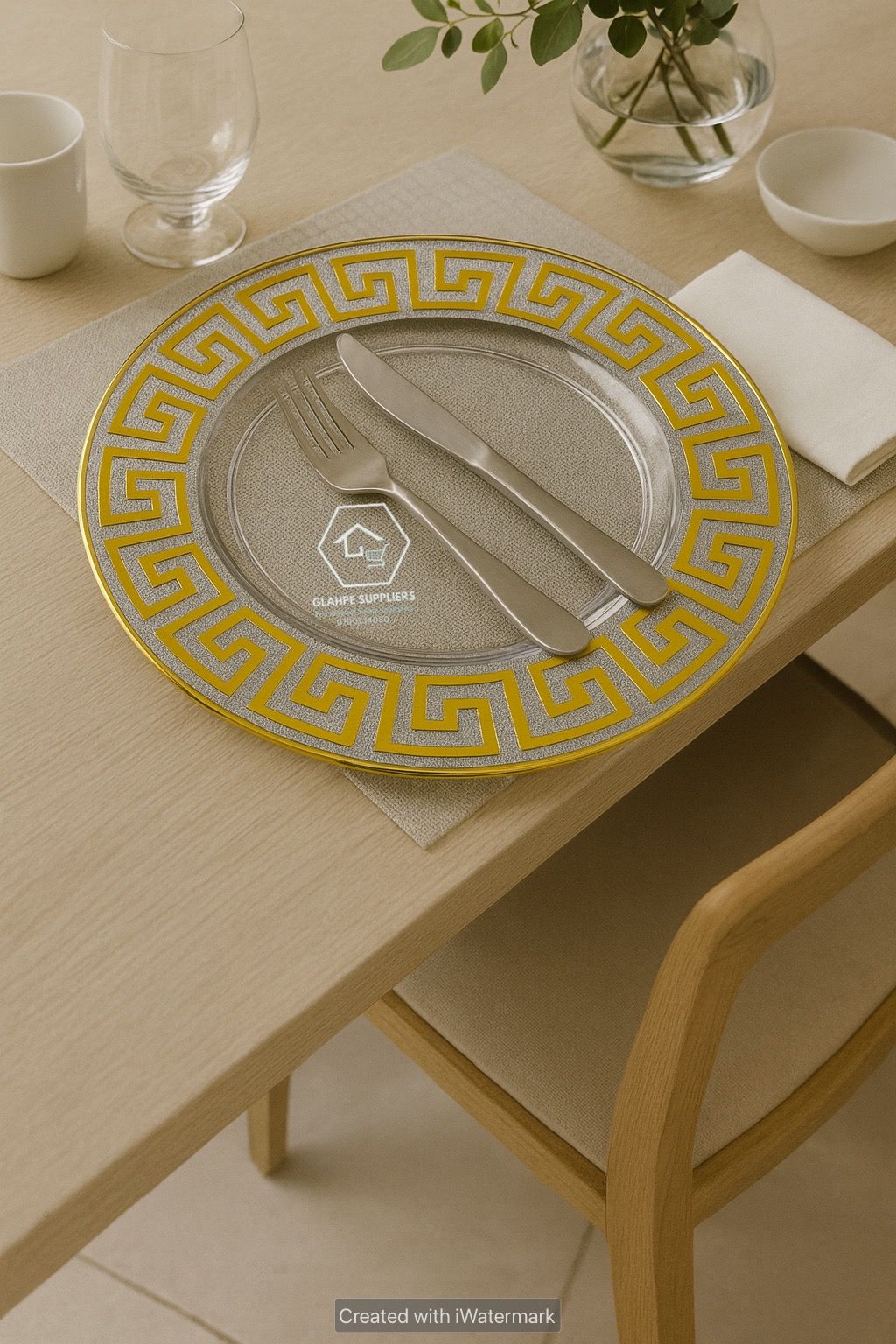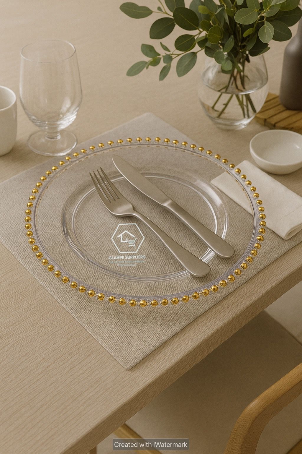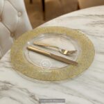 Enhance your table setting with this luxury gold-rim acrylic charger plate, designed to bring elegance and sophistication to any dining occasion. Crafted from high-quality acrylic, it offers the refined look of glass while being lightweight, durable, and shatter-resistant.