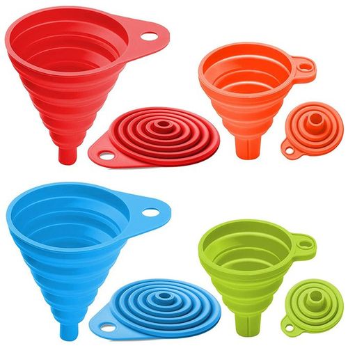 Upgrade your kitchen essentials with these Collapsible Silicone Funnels, perfect for transferring liquids, dry ingredients, and more without spills!