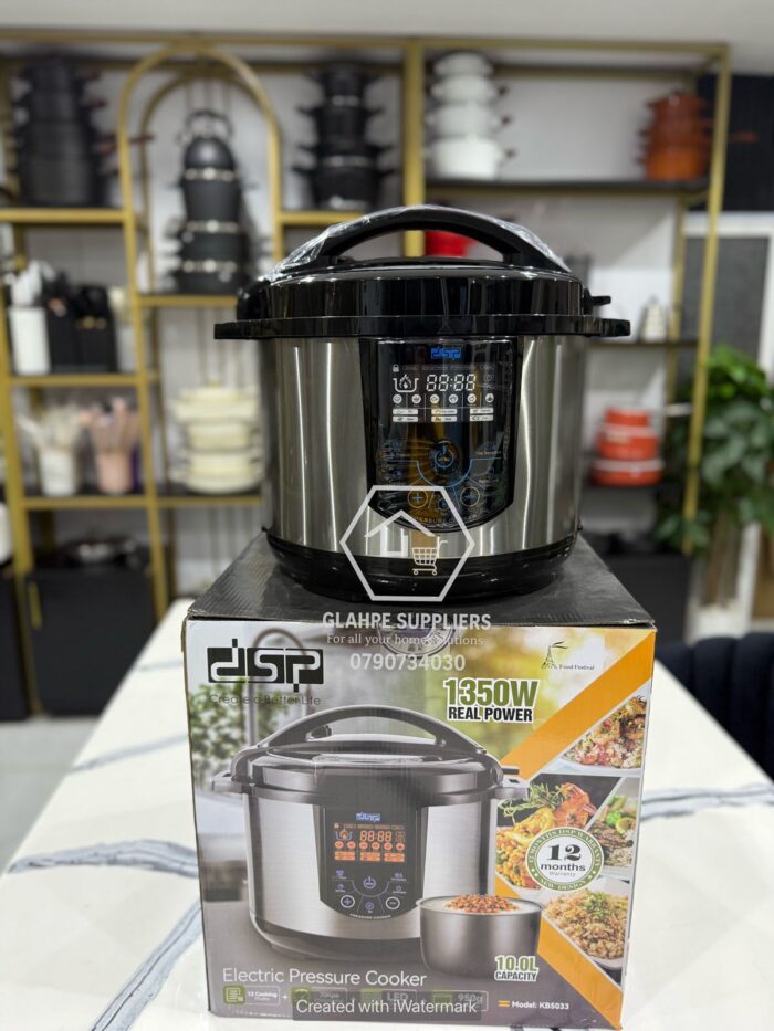 Get the Best Price for 6L Kenwood Electric Pressure Cooker at Glahpe Suppliers. Fast Same-day Delivery Anywhere in Kenya. Payment on Delivery Countrywide. 6 pre-programmed menu (Rice, Cake, Chicken, Soup, Bean/Beff, Manual Cook) 5 built-in safety features (Lid Auto-Lock, Pressure Auto-Relief, De-Pressure, Temperature Limit, Ultra-high temperature safe) 6L Big Capacity Time and Power Saving. 70% faster than conventional cooking Airtight cooking retains nutrient and original taste Keep food hot for 12 hours Easy to clean non-stick coated inner pot Safe Lockable Handle Built-in over heat protection device Power: 1000-1200W Voltage: 220-240V 50/60Hz Size: 38 x 34 x 33 cm