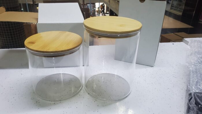 • Attractive and sturdy design with a wooden lid and transparent glass.
