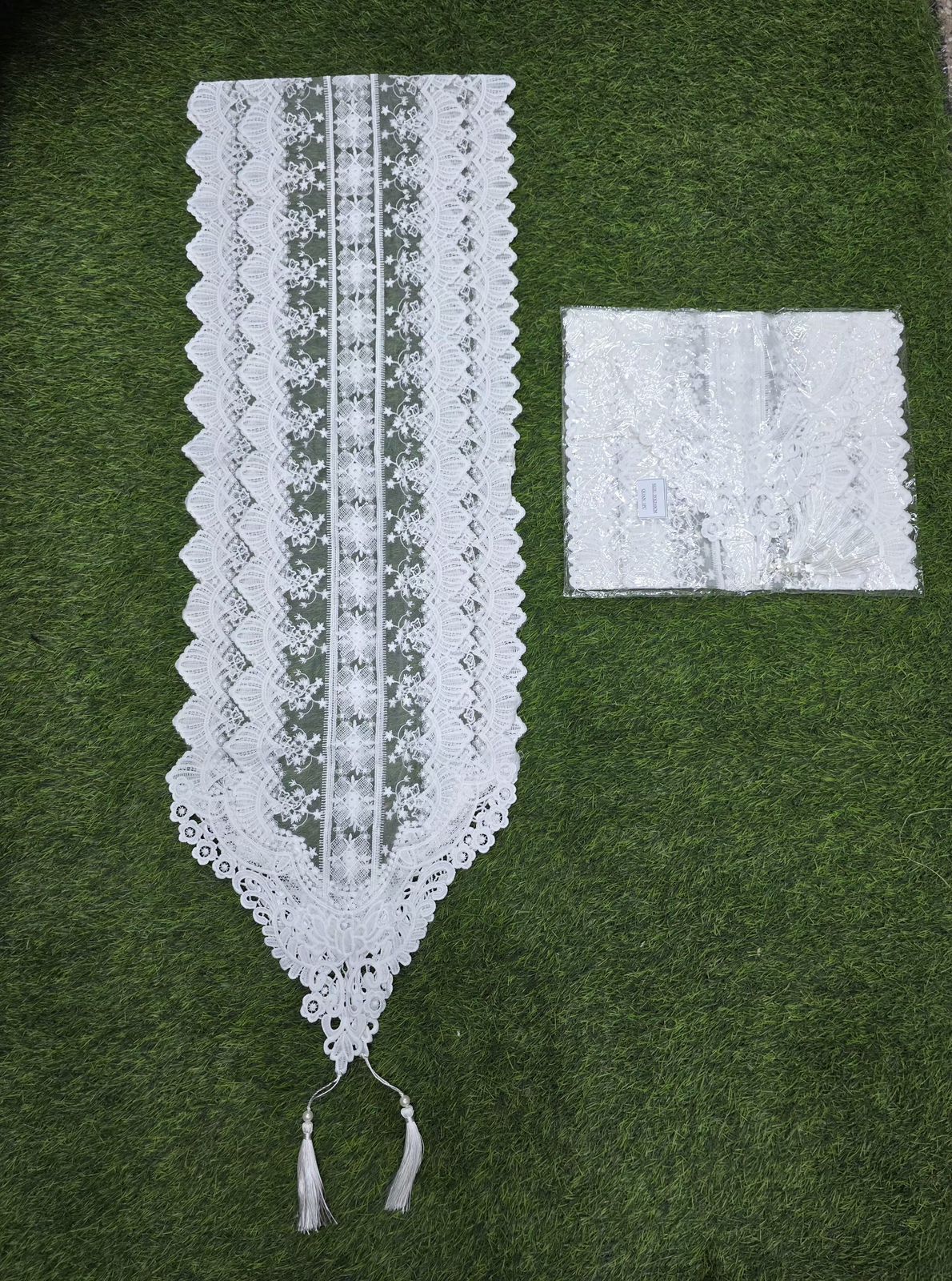 Rustic Table Runner with lace design.