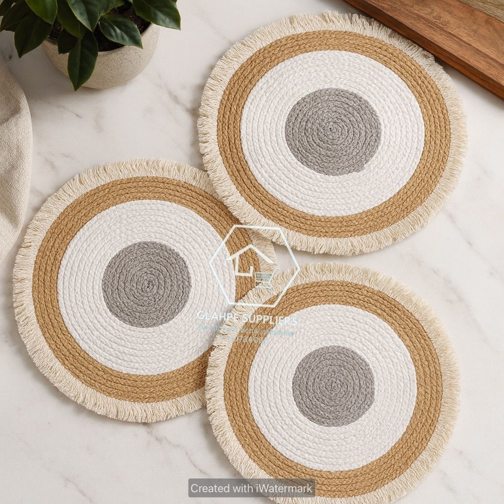 Add a touch of timeless style and refined texture to your dining or living space with this beautifully crafted Round Braided Placemat Set. Perfect for everyday meals or special occasions, these placemats combine natural charm with modern simplicity.