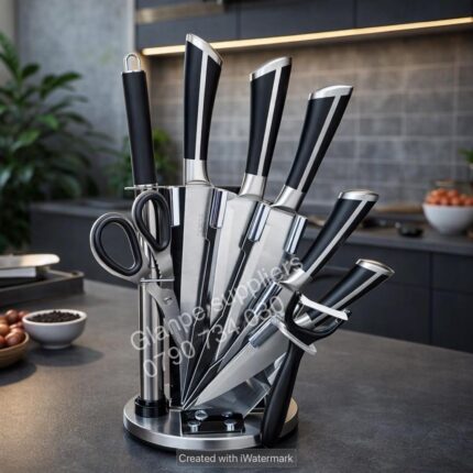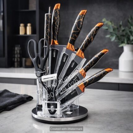 *Chef Knife ❇️8” Bread Knife ❇️7” Cleaver Knife ❇️5” Utility Knife ❇️3.5” Paring Knife ❇️Scissors ❇️Holder