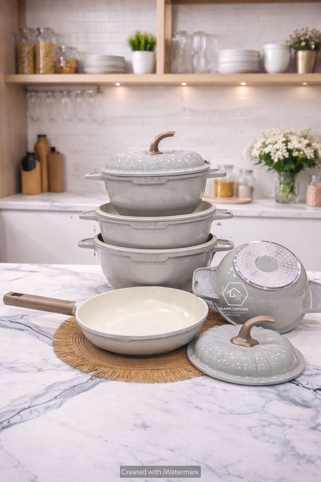 - The set usually includes various types of cookware, such as: